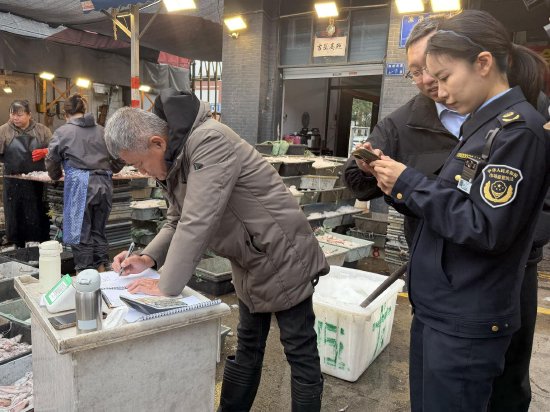 源头可溯,质量可控。执法人员严格查验水产品的“一品一码”追溯信息、进货票据及合格证明文件,对进口产品重点核查报关单、检验检疫证明。市场管理方同步强化主体责任,将每日水产品抽检批次从平时的270多批提升至300批以上,严防不合格产品流入市场。春节期间,部分商户将照常营业,市场供应充足,预计日交易量将突破700吨。